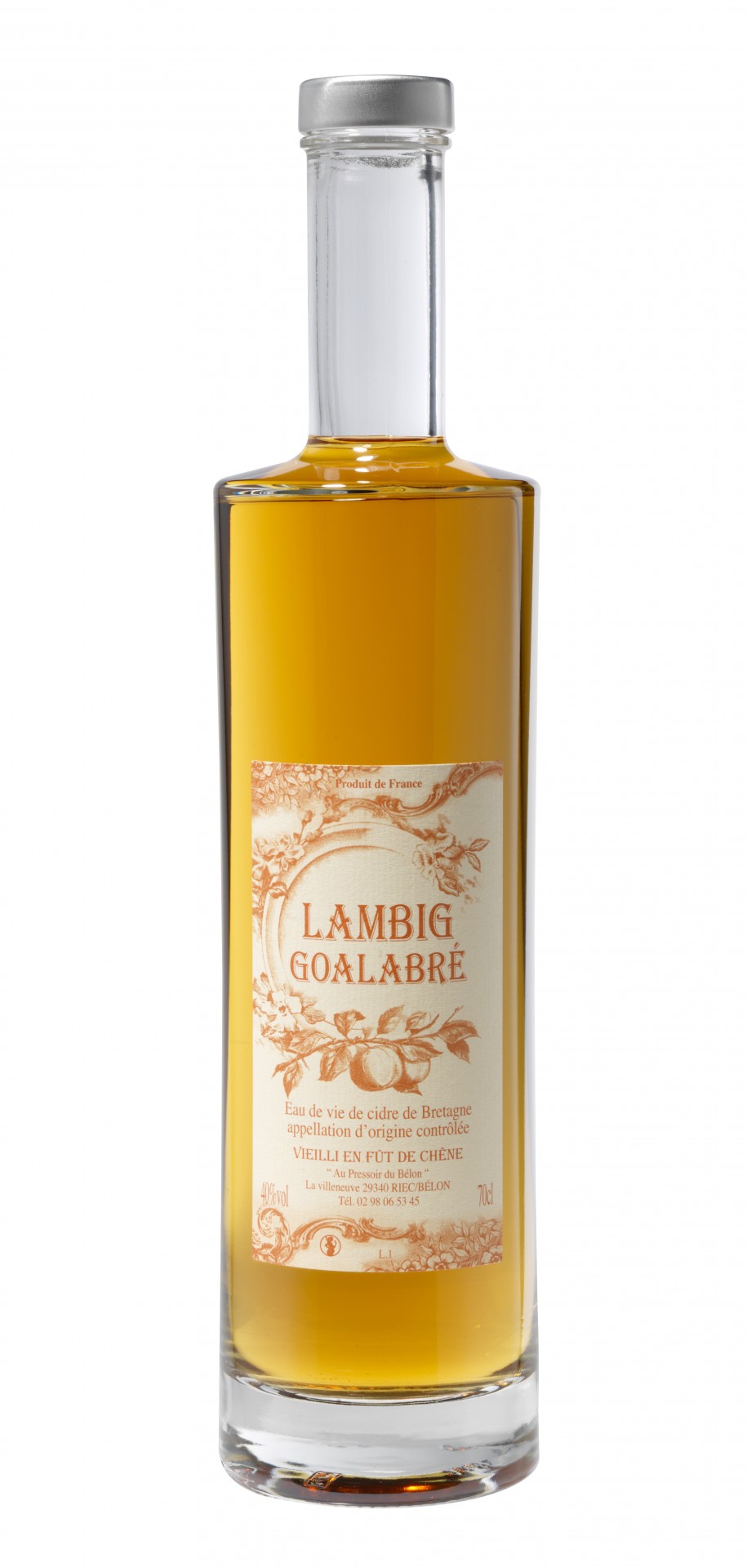 Dieser Lambig reift 6 Jahre in Fässern, bevor er diese bernsteinfarbene Farbe und diese Harmonie zwischen dem Geschmack von Apfel und dem Vanilleholz des Eichenfasses erreicht.